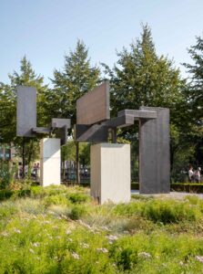 Carel Visser (1928-2015) moest niets hebben van traditionele beeldhouwkunst in brons, marmer of hout. Liever ging hij stalen platen en ijzeren balken te lijf met een snijbrander en een lasapparaat. Zijn werk bouwde aanvankelijk voort op het pionierswerk van kunstenaars als Constantin Brancusi en Alberto Giacometti. Al snel kreeg zijn werk een uitgesproken eigen signatuur door een steeds sterkere abstrahering van natuurvormen. Met zijn geometrische abstractie vond hij in de jaren 60 en 70 aansluiting bij internationale kunststromingen zoals de minimal art.