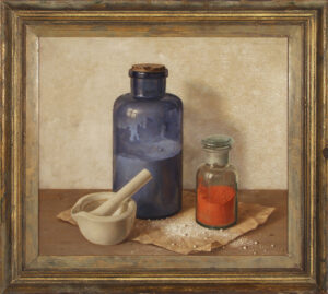 Gerrit de Jong, Stilleven met blauwe fles, 1953. Olieverf op doek, 38 x 33 cm (Collectie Zaans Museum).
