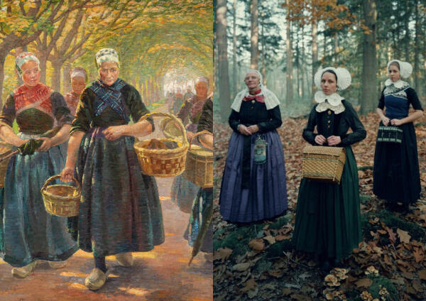 Links: Emile Charlet (1851-1910), Terugkeer van de markt, Nunspeet, 1885, Olieverf op doek, Collectie Zuiderzeemuseum | Rechts: Jimmy Nelson (1967) | Alie, Nienke & Rhodé | Noordwest-Veluwe, Gelderland | The Netherlands, 2021, Collectie Zuiderzeemuseum Enkhuizen.