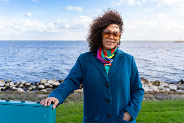 Babs Gons, staand aan het IJsselmeer. Foto: studio Merike.