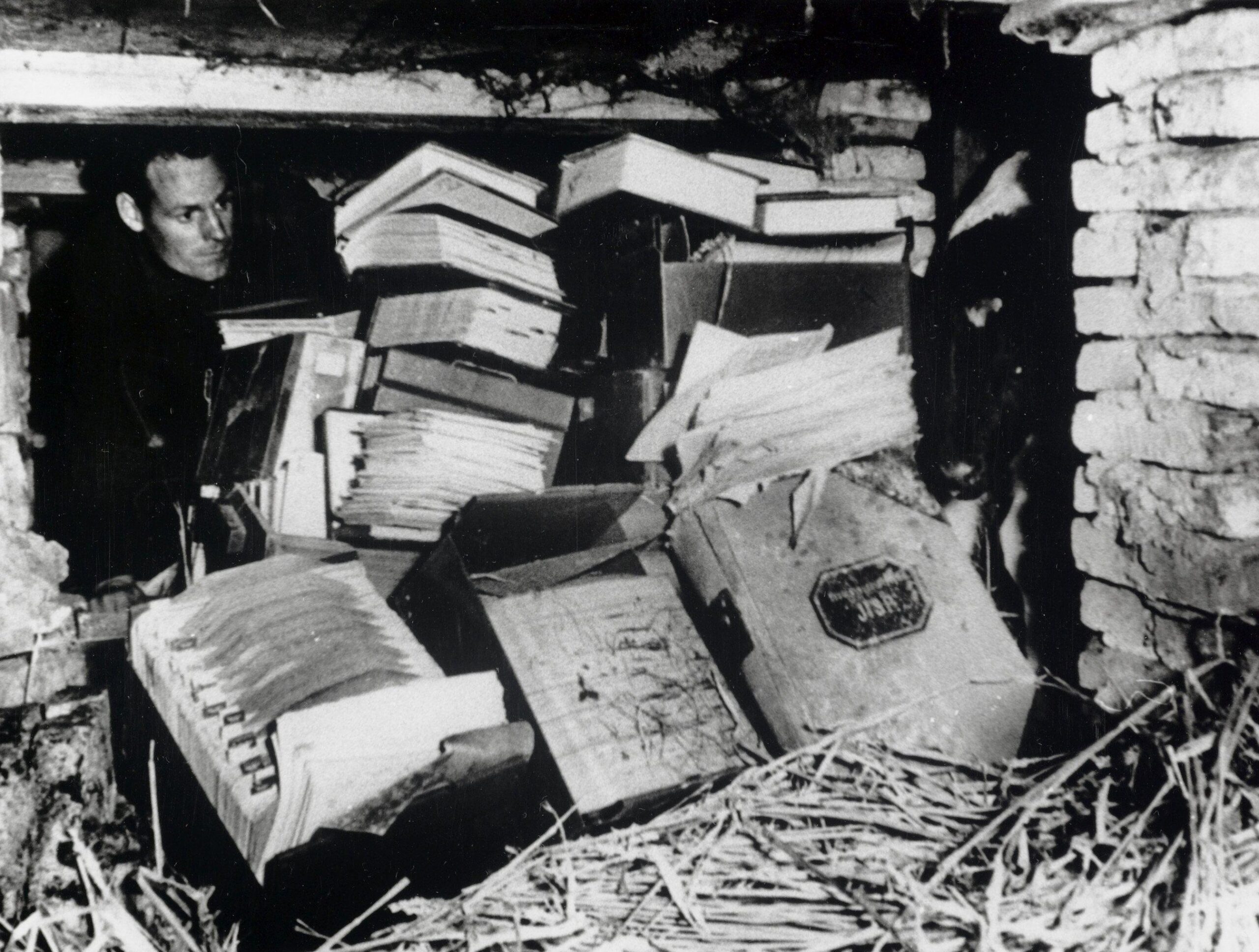 Wil je beter leren zoeken, verdiepen en begrijpen? Meld je aan en maak kennis met allerlei oorlogsbronnen. Eén daarvan is de afgebeelde foto, de in een stal in de Engewormer verborgen bevolkingsregisters van de gemeenten Wormer en Jisp die in de Kerstnacht van 1944 door het verzet werden buitgemaakt.