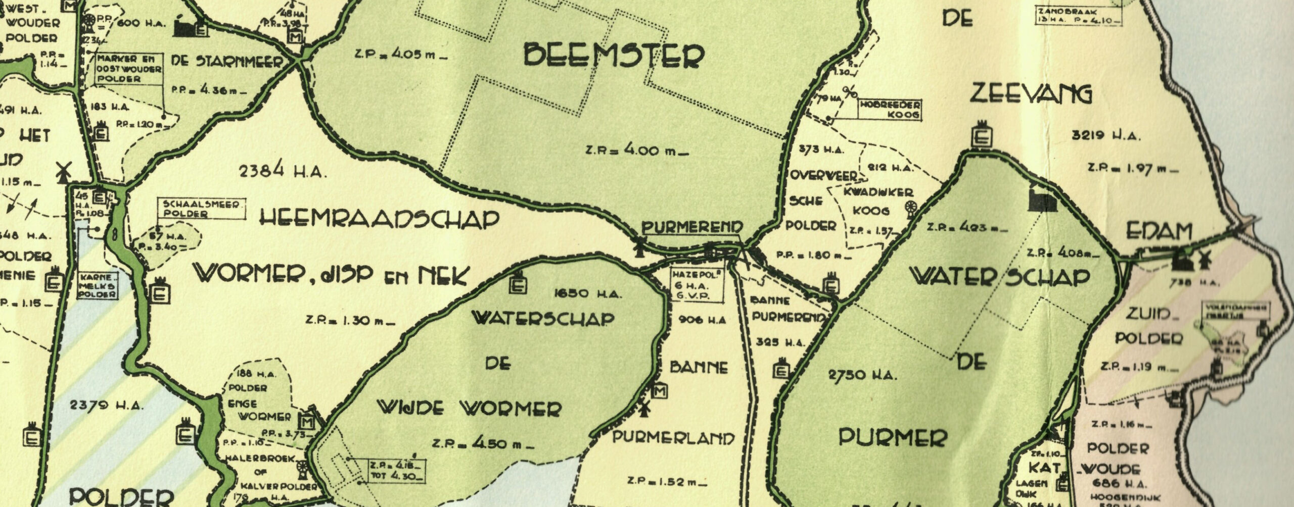 Detail van Waterstaatskundige kaart van de provincie Noord-Holland, z.d. Collectie Waterlands Archief, toegang 1036, inventarisnr 131.