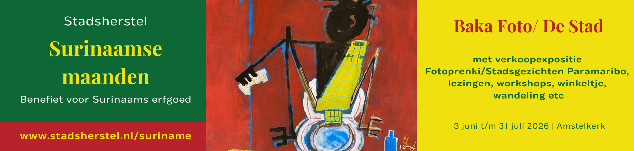 De expositie, die dagelijks gratis te bezoeken is in de Amstelkerk, is een groepstentoonstelling met kunstenaars van Surinaamse afkomst die veelal in Amsterdam wonen, én Amsterdamse kunstenaars met een sterke band en liefde voor Suriname. Tijdens de zevende editie van de Surinaamse Maanden staat Paramaribo, de hoofdstad van Suriname, centraal. Er worden (historische) stadsgezichten getoond. Daarnaast is werk te zien dat koloniale, architectonische en persoonlijke thema’s belicht, die verbonden zijn met deze bijzondere stad, die nog steeds rijk is aan zoveel houten gebouwen. Curator is Myra Winter en Mede- curator Nellie Bakboord.