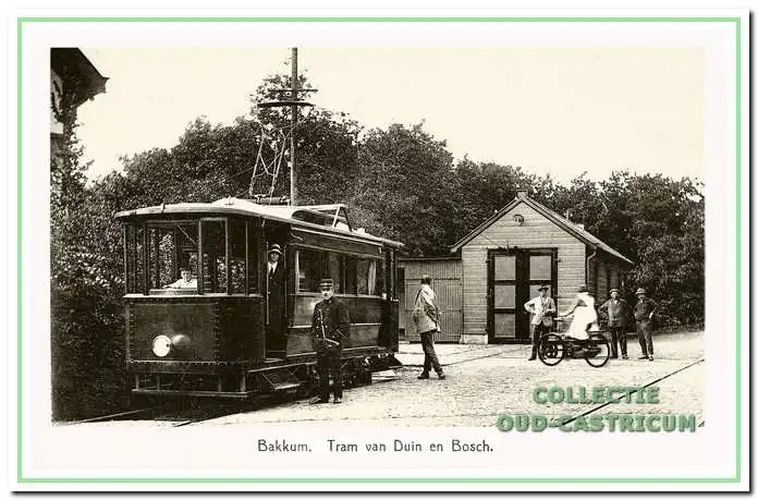 De vroegere tram van Duin en Bosch, geparkeerd voor de remise. Beeld via Oud-Castricum.