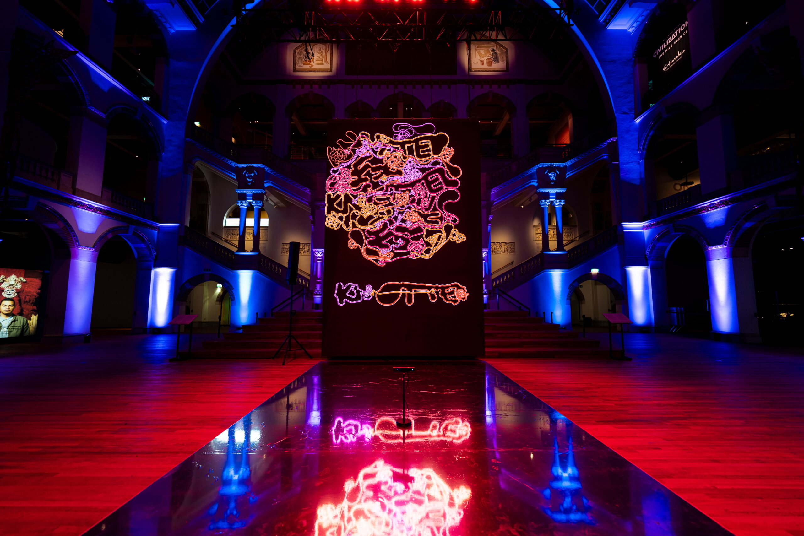 In de indrukwekkende Lichthal, omringd door Escher-achtige galerijen en trappenhuizen, schittert speciaal tijdens Amsterdam Light Festival de nieuwe interactieve lichtinstallatie Knotted van internationaal kunstenaar en creatief technoloog Raven Kwok. Geïnspireerd op de traditionele Chinese knoopkunst transformeert Kwok het eeuwenoude symbool van eenheid en verbondenheid in een generatief digitaal lichtweb, dat reageert op de aanwezigheid en bewegingen van bezoekers. De lichtlijnen komen samen, waaieren uit en vervlechten tot tijdelijke patronen, waardoor bezoekers letterlijk onderdeel worden van het werk.