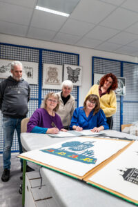 Maja Houtman en Amanda Vollenweijder ondertekenen de schenkingsovereenkomst. Foto: Benno Ellerbroek.