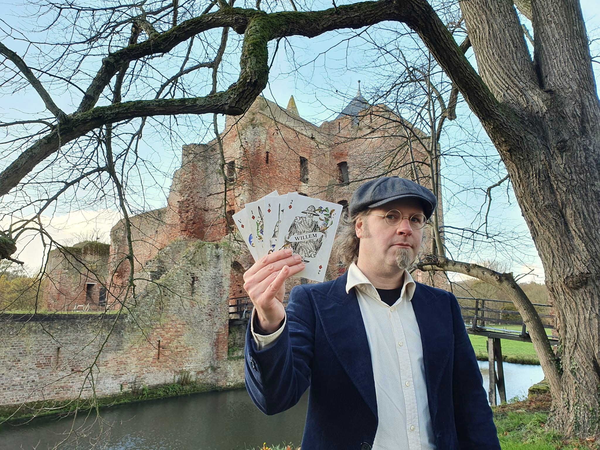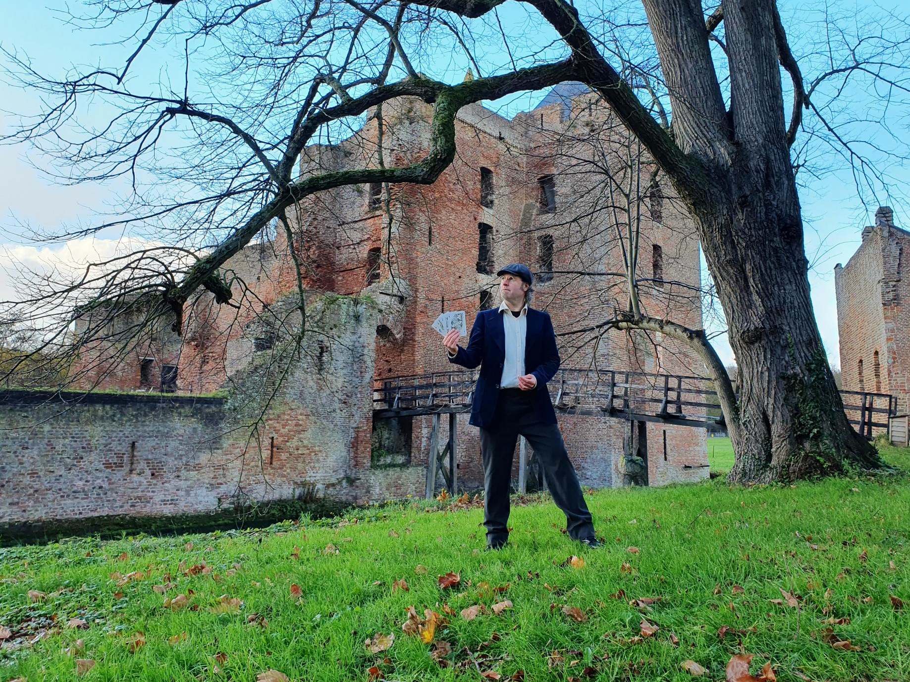 Presentator Marius Bruijn op de Ruine van Brederode. Beeld: Marius Bruijn / NH Media.