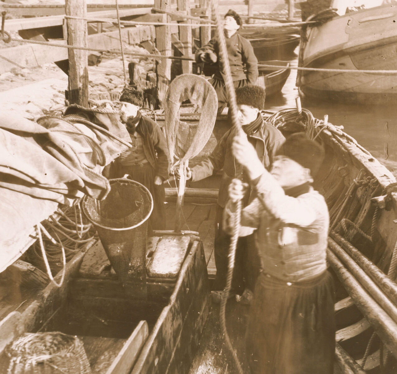 Volendammer vissers aan het werk. Collectie Waterlands Archief.
