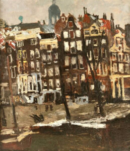 Het betreft een olieverf op doek, afkomstig uit een particuliere collectie. Het werk toont een karakteristiek Amsterdams stadsgezicht en is typerend voor het werk van deze prominente Amsterdamse impressionist.