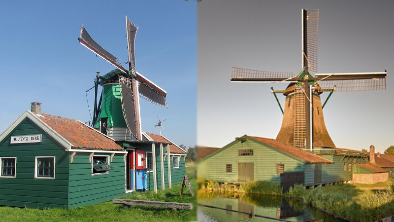 Molen De Jonge Dirk en De Schoolmeester. Foto: De Zaansche Molen.