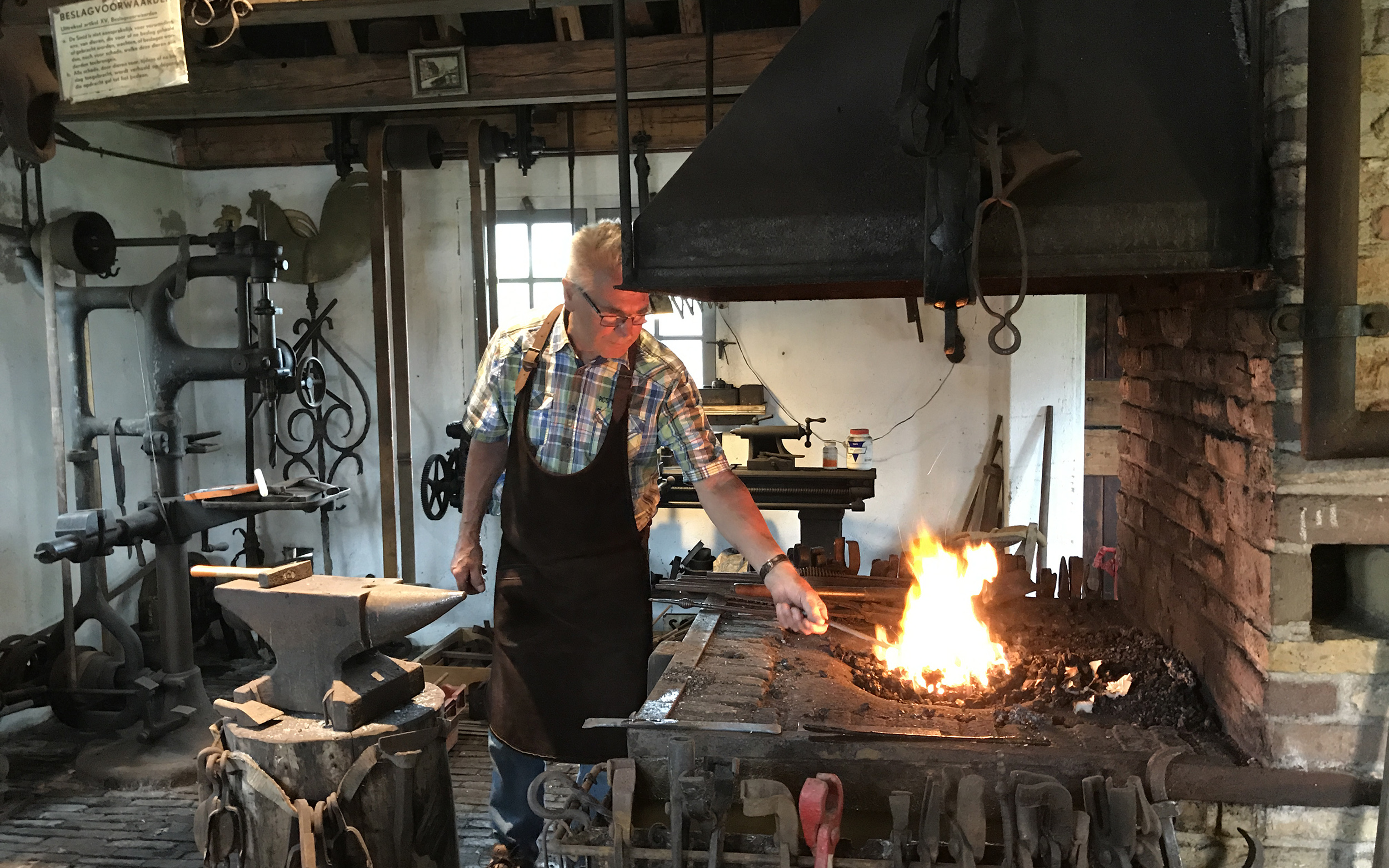 De vorige smid van Museum Kaap Skil, Cor Rood, aan het werk in de smederij in het openluchtmuseum. Foto: Museum Kaap Skil.