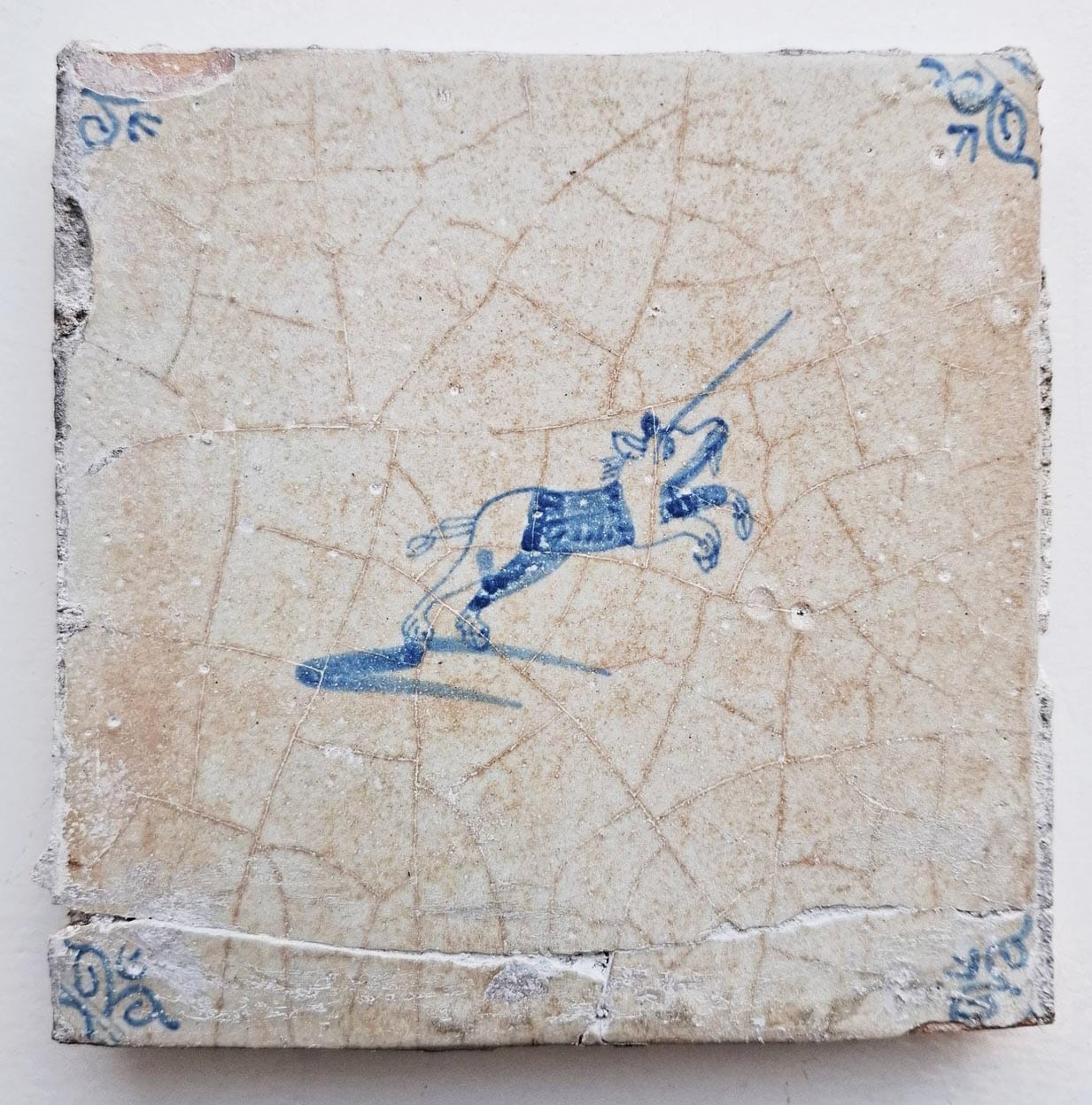 Tegel van een steigerende eenhoorn. Beeld: Erfgoed Alkmaar.