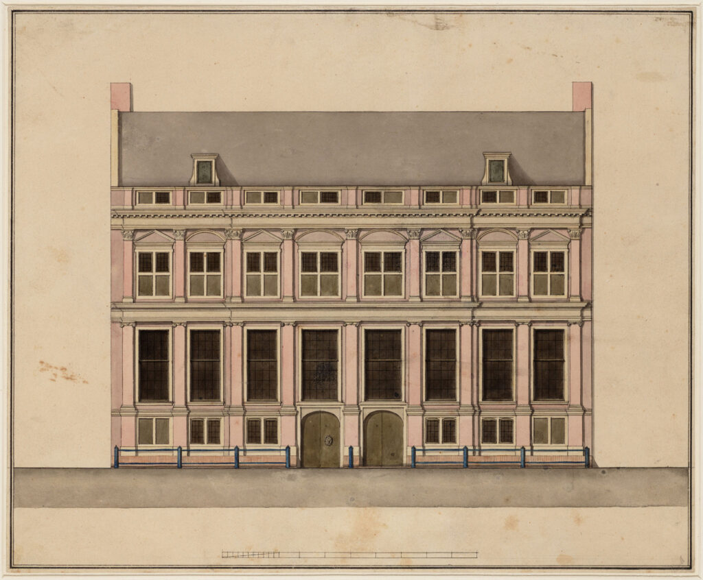 Het ontwerpen van de gevel van het Coymanshuis aan de Keizersgracht 177 in Amsterdam was één van de eerste opdrachten die Jacob van Campen mocht uitvoeren. Zijn voorkeur voor strak en symmetrisch is hier al zichtbaar. Tekening, 1624. Collectie Stadsarchief Amsterdam: tekeningen en prenten, afbeeldingsbestand
