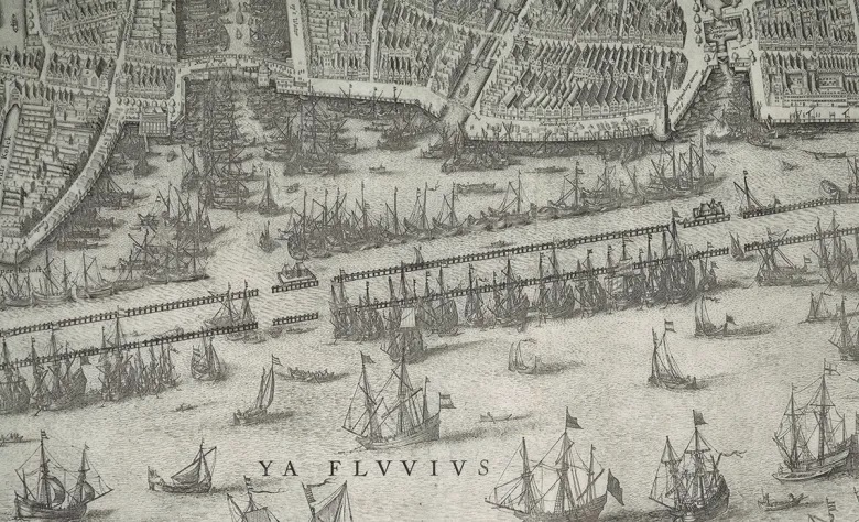 Havens zijn tegenwoordig steeds meer gescheiden van steden. Moderne havenlogistiek en stedelijk leven zijn en worden steeds meer op afstand geplaatst. In de middeleeuwse en vroegmoderne stad was dit heel anders: De haven was niet alleen punt van aankomst en vertrek, maar zat innig vervlochten in het stedelijk weefsel. Amsterdam is daar misschien wel één van de beste en bekendste voorbeelden van. Het water was overal en het is eigenlijk moeilijk om precies aan te wijzen waar de haven begint en eindigt: de hele stad is haven. Maar dat betekent niet dat er overal schepen liggen, of je zomaar naar de Dam kon varen. Er is juist ook een heel complex logistiek systeem waar goederen steeds van grotere schepen naar kleinere schuiten en sloepen werden overgeladen voor de volgende etappe.