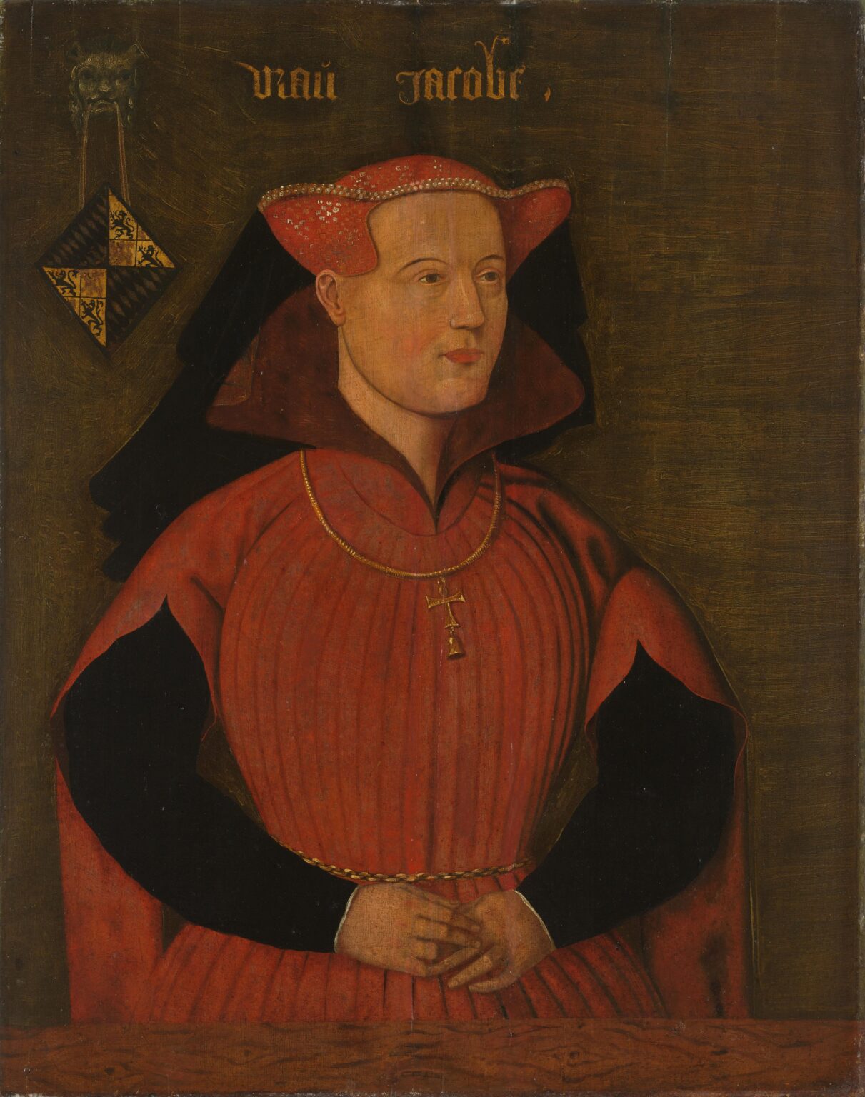 Portret van Jacoba van Beieren (1401-1436), gravin van Holland, Zeeland en Henegouwen. Zestiende-eeuwse kopie naar het origineel uit ca. 1435. Collectie Rijksmuseum, objectnummer SK-A-498. (Pendant van SK-A-499)