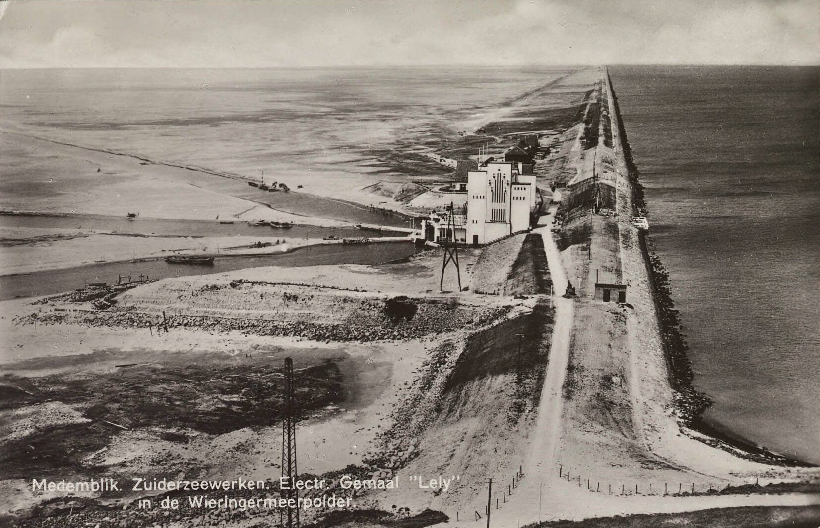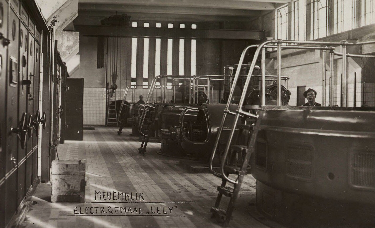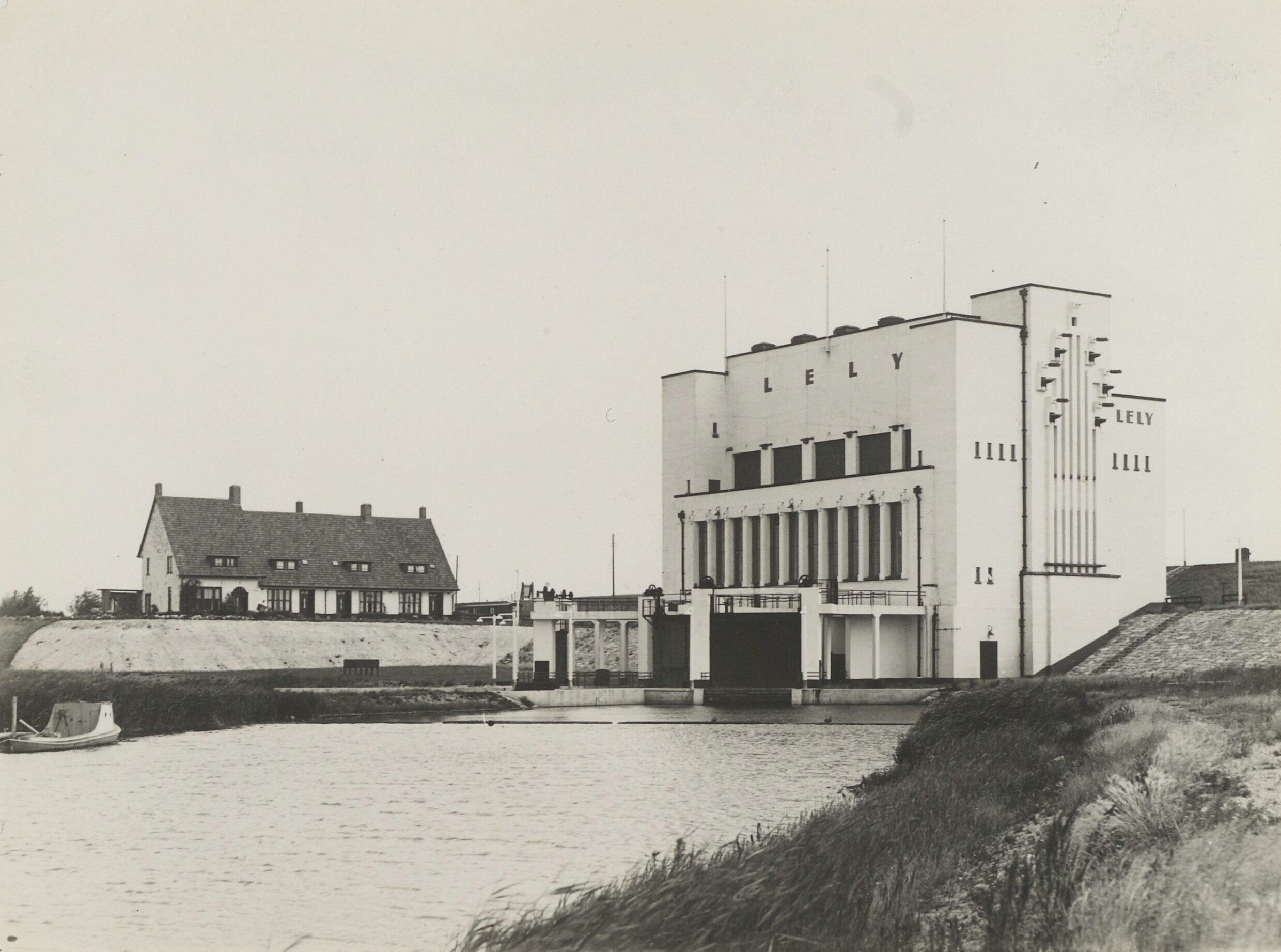 Gezicht op het elektrisch gemaal Lely, 1932. Collectie Provinciale Atlas Noord-Holland, Noord-Hollands Archief.