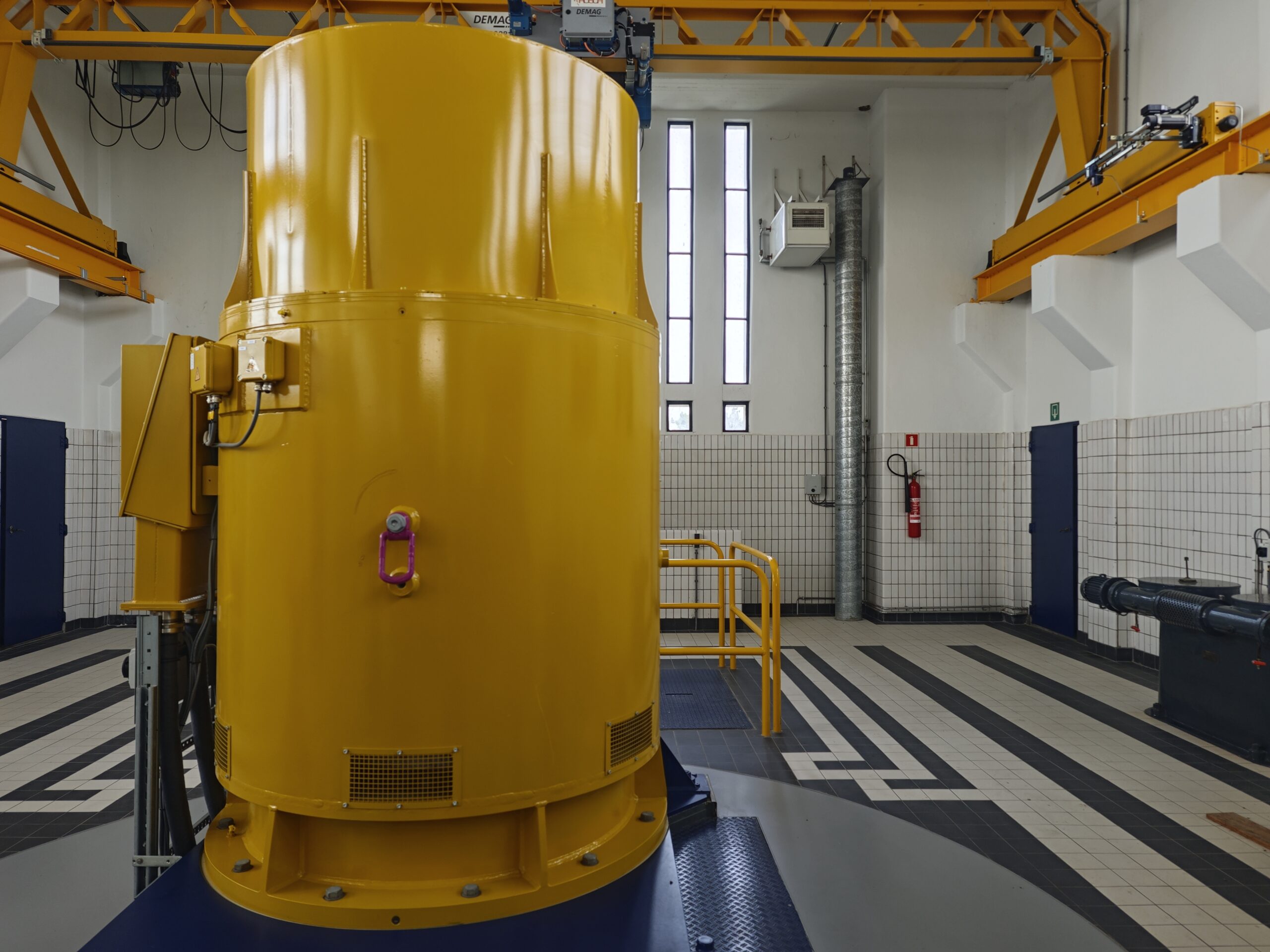 Één van de drie moderne pompen in de machinekamer van gemaal Lely. Foto: Sarah Remmerts de Vries.