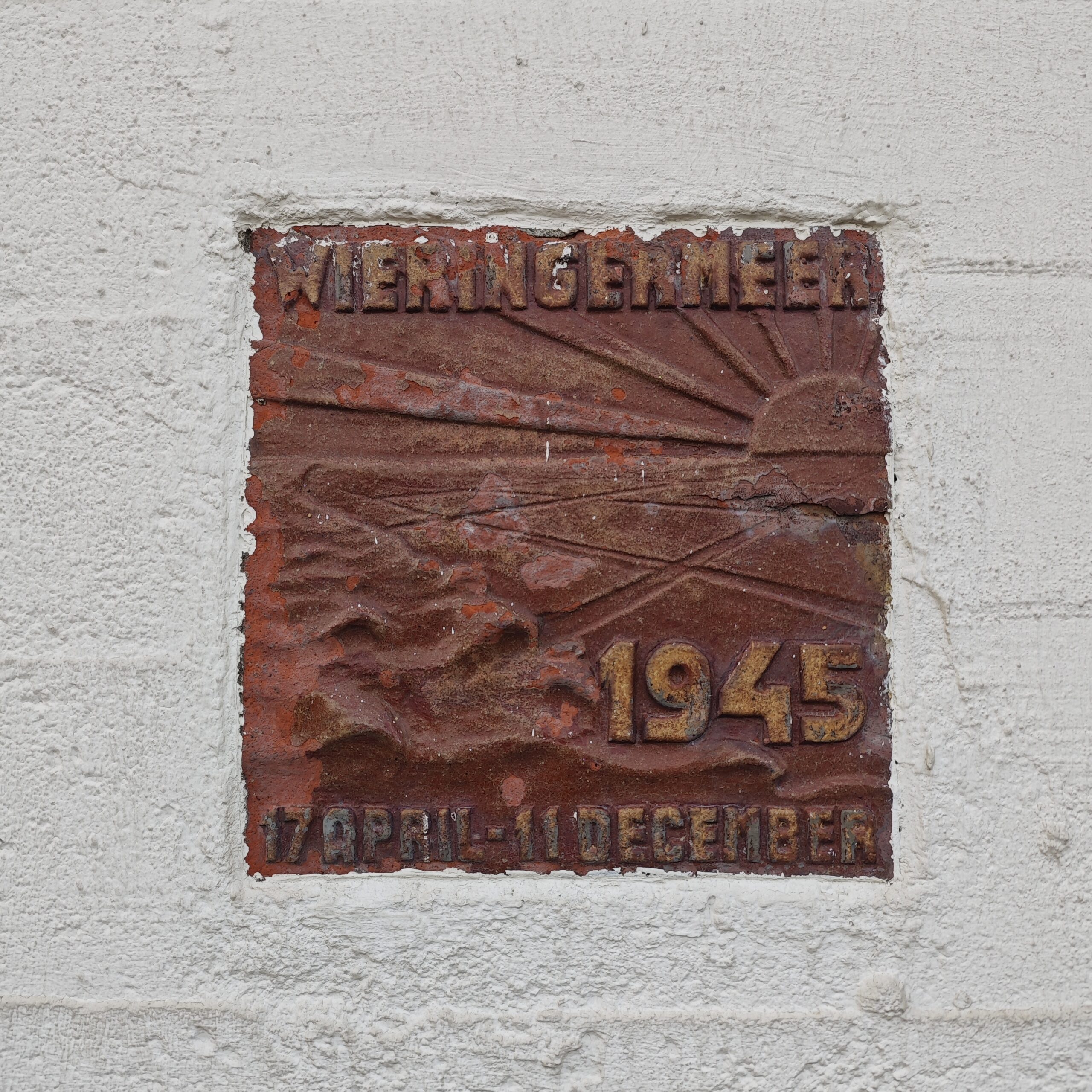 Gedenksteen op gemaal Lely ter herinnering aan de overstroming en tweede drooglegging van de Wieringermeer in 1945. Foto: Sarah Remmerts de Vries.