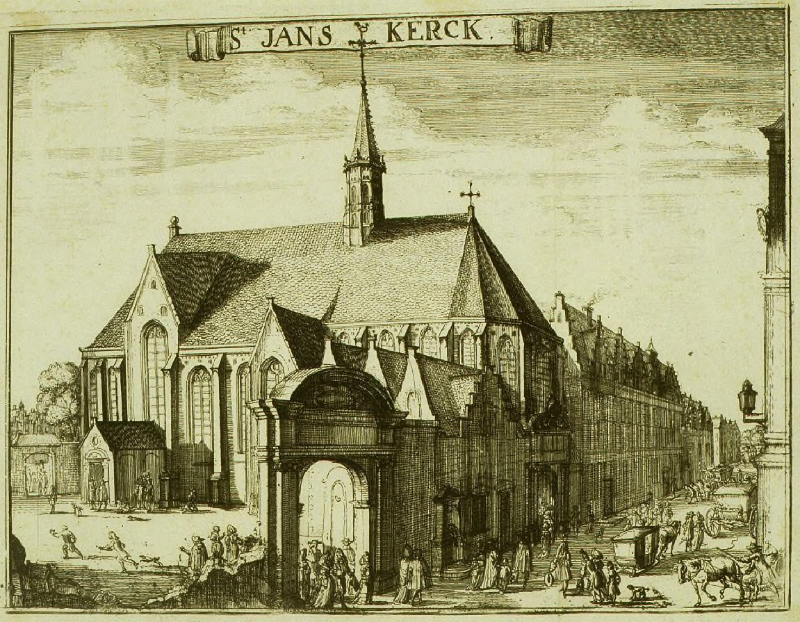 De Janskerk in de Jansstraat, zoals Romeyn R. de Hooghe die vastlegde in 1688. Noord-Hollands Archief / Beeldcollectie van de gemeente Haarlem, inventarisnummer 43991.