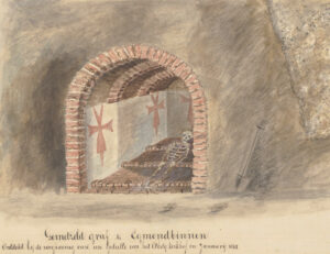 Het graf van abt Willem van Rollant (overleden in 1365) werd aangetroffen bij graafwerkzaamheden op het voormalige abdijkerkhof in 1844. Scheltus van Kampferbeeke maakte deze tekening, die bewaard wordt in de afdeling prenten en tekeningen van de Provinciale Atlas van het NHA (359). Inventarisnummer 435.