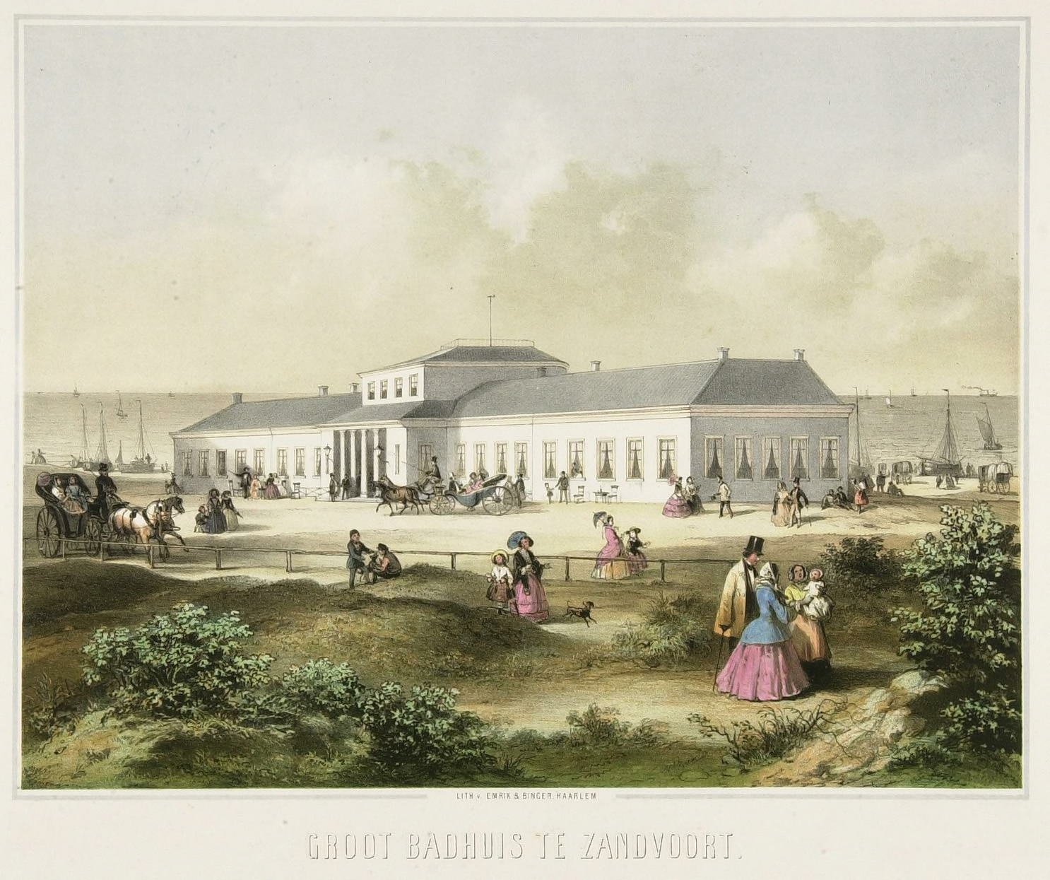 In de tijd dat Zandvoort als badplaats wordt ontdekt, is het nog een arm vissersdorp. Zandvoorters trekken te voet naar Haarlem, om daar hun vis op de markt te verkopen. Een paar welgestelde burgers van Haarlem vatten in 1825 het plan op om de zandweg tussen Aerdenhout en Zandvoort te bestraten en aan zee een badhuis te bouwen. De gasten arriveren per diligence, om in het badhuis een bad met verwarmd zeewater te nemen.