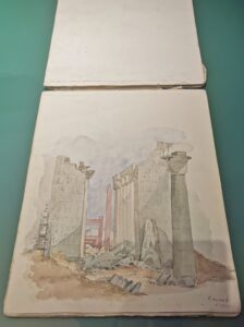 Alexine Tinne, Schetsboek met aquarel van de tempel van Karnak, 1855-1869. Collectie Haags Historisch Museum. Foto: Sarah Remmerts de Vries.