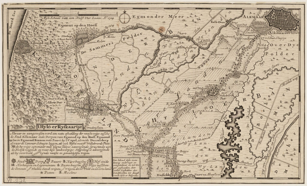 De putjes bij Heiloo waren lange tijd een belangrijk pelgrimsoord. In 1704 werd er zelfs een soort ‘reiskaartje’ uitgegeven voor toekomstige bedevaartgangers, waarop zowel de exacte ligging van de putjes als de route ernaartoe zorgvuldig stond aangegeven.”t Hyló-er Ryskaartje’. Het z.g. Heilooer reiskaartje, gemaakt ten dienste van de pelgrims. Vervaardiger onbekend, 1704. Collectie Regionaal Archief Alkmaar, Catalogusnummer PR 1003239.