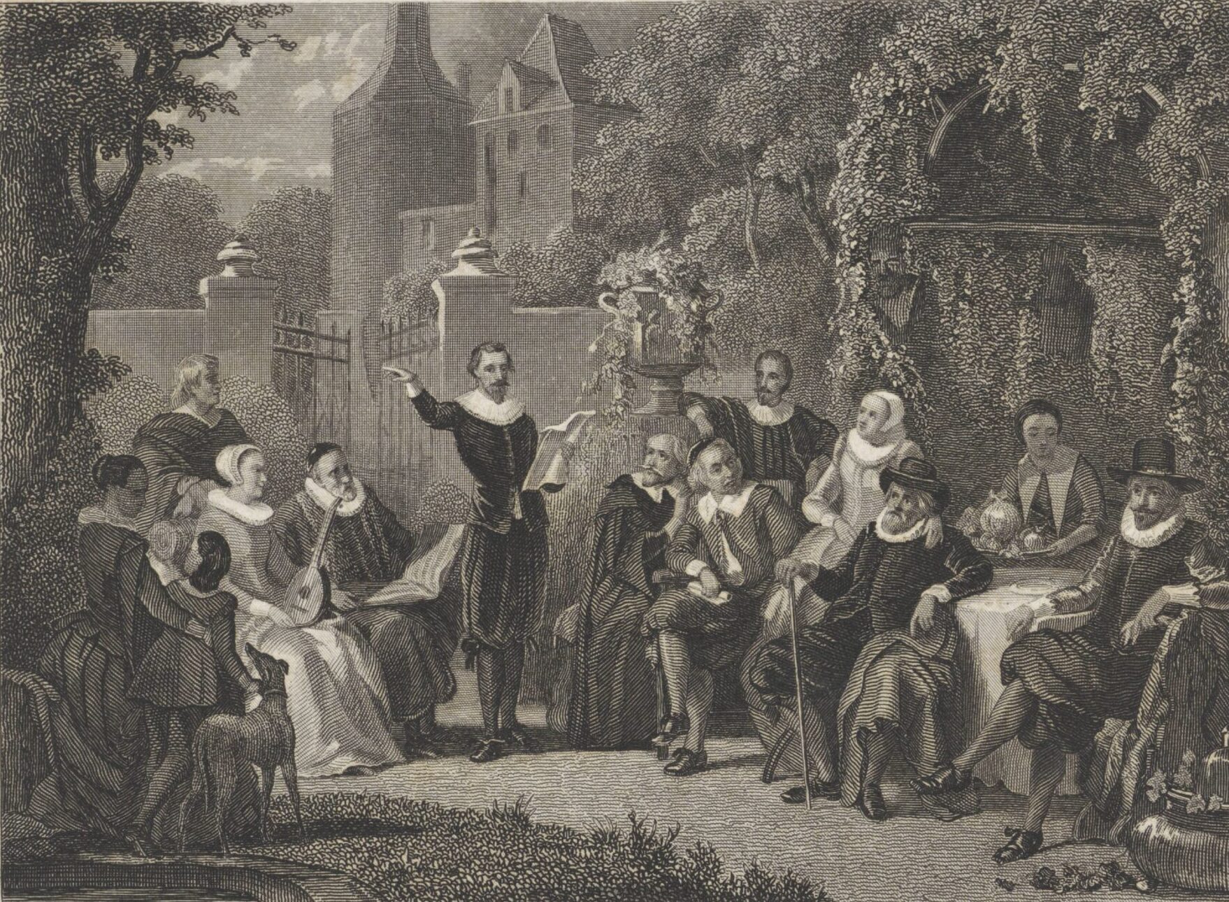 De Muiderkring. Prentmaker: Dirk Jurriaan Sluyter naar schilderij van Moritz Calisch, 1866. Collectie Rijksmuseum, objectnummer: RP-P-1908-4381.