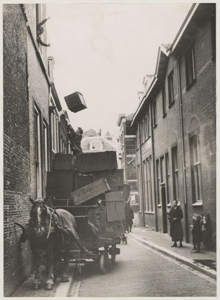 Maar liefst tweeduizend kisten waren er nodig om het Haarlemse Gemeentearchief in 1937 te verhuizen van de Jacobijnestraat naar de Janskerk. Noord-Hollands Archief / Beeldcollectie van de gemeente Haarlem. Foto N.V. Vereenigde Fotobureaux, inventarisnummer 15063.