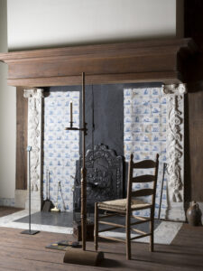 In het voorhuis staat ook een linnenpers, want linnen was in de zeventiende eeuw een kostbaar bezit. De lakens die er van werden gemaakt, moesten niet alleen hagelwit zijn, maar ook strak gestreken. “Het huis was niet gemeubileerd toen het aan ons werd overgedragen, dus dat moesten we opnieuw inrichten met historische meubelen. In zo’n voorhuis stond vaak prominent een linnenkast, maar het linnengoed was eigenlijk nóg belangrijker dan de kast zelf, want hoe meer linnen je bezat, hoe rijker je was. En zo’n linnenpers, waarmee je de vouwen strak kon persen, was een pronkmeubel.”