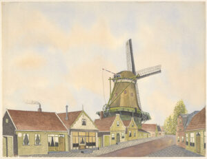 Meelmolen De Dood en houten huizen aan de Lagedijk,1930-1945. Vervaardiger: Johannes Nicolaas J.N Eijman (1871-1959). Noord-Hollands Archief / Collectie van prenten en tekeningen van de Provinciale Atlas Noord-Holland, inventarisnummer 6436.