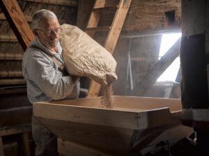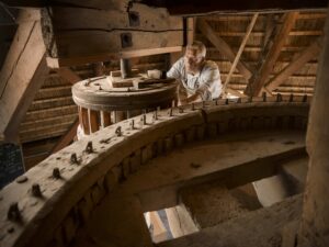 Molenaar Paul Buurmans aan het werk in molen De Bleeke Dood. Foto via Vereniging De Zaansche Molen.