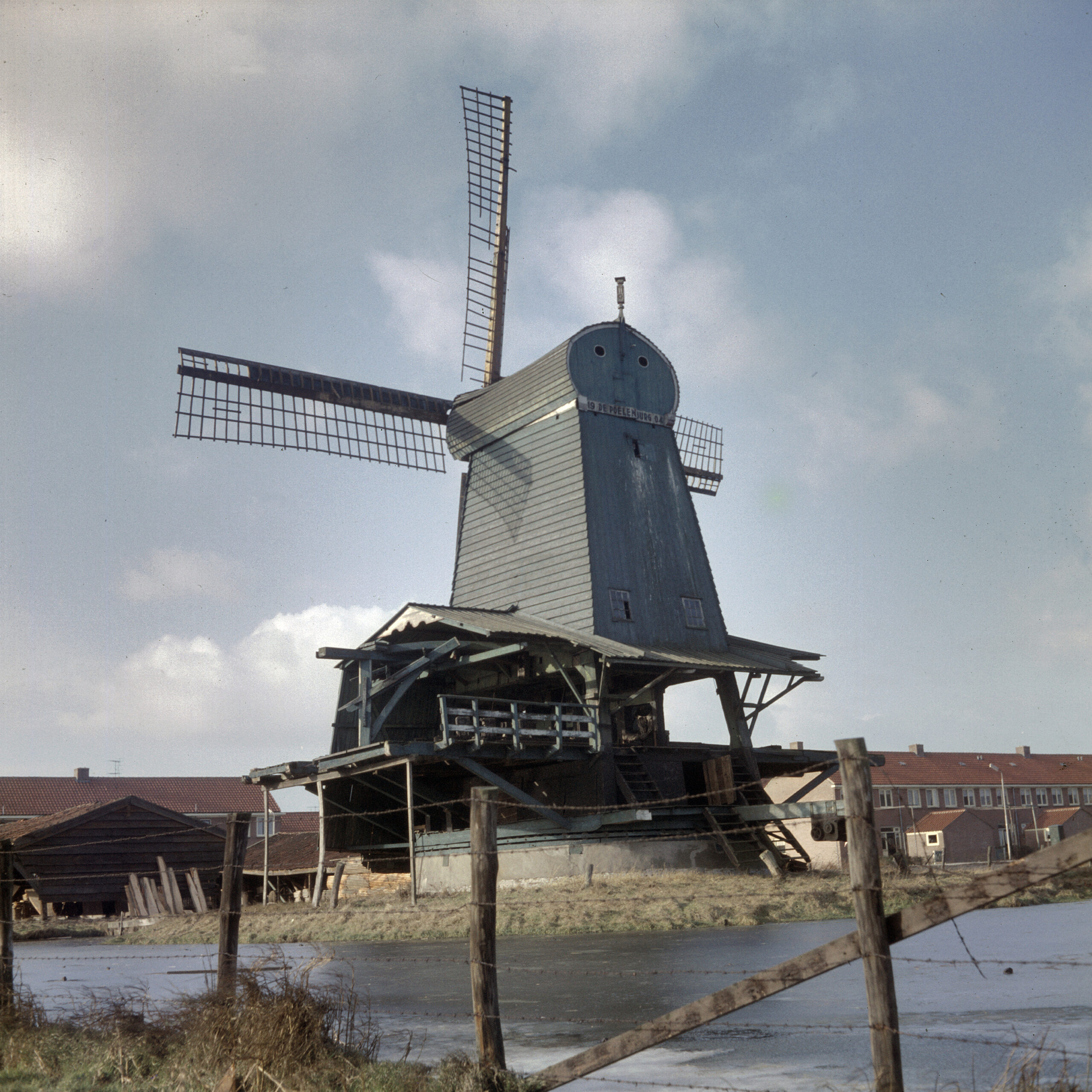 Molen De Gekroonde Poelenburg op 19 januari 1960. Historisch adres: Ten noorden van het Weerpad, aan het begin van de Gouw, ter hoogte van de Meidoornstraat, Zaandam. Rijksdienst voor het Cultureel Erfgoed, Documentnummer 404.518.