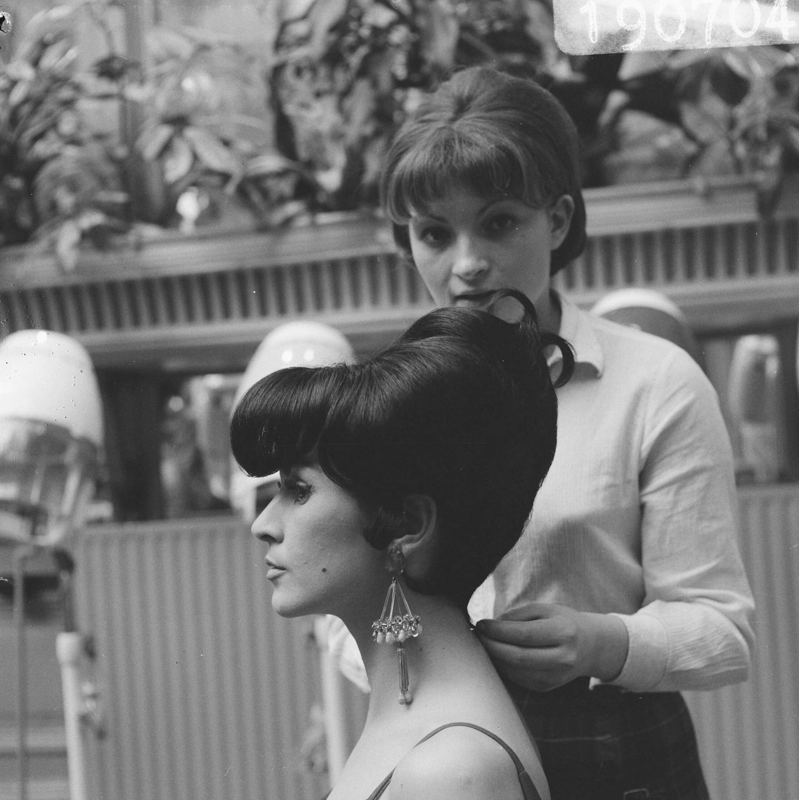 Dames in kapsalon aan de Madelievenstraat te Amsterdam, jaren zestig. Collectie Stadsarchief Amsterdam.