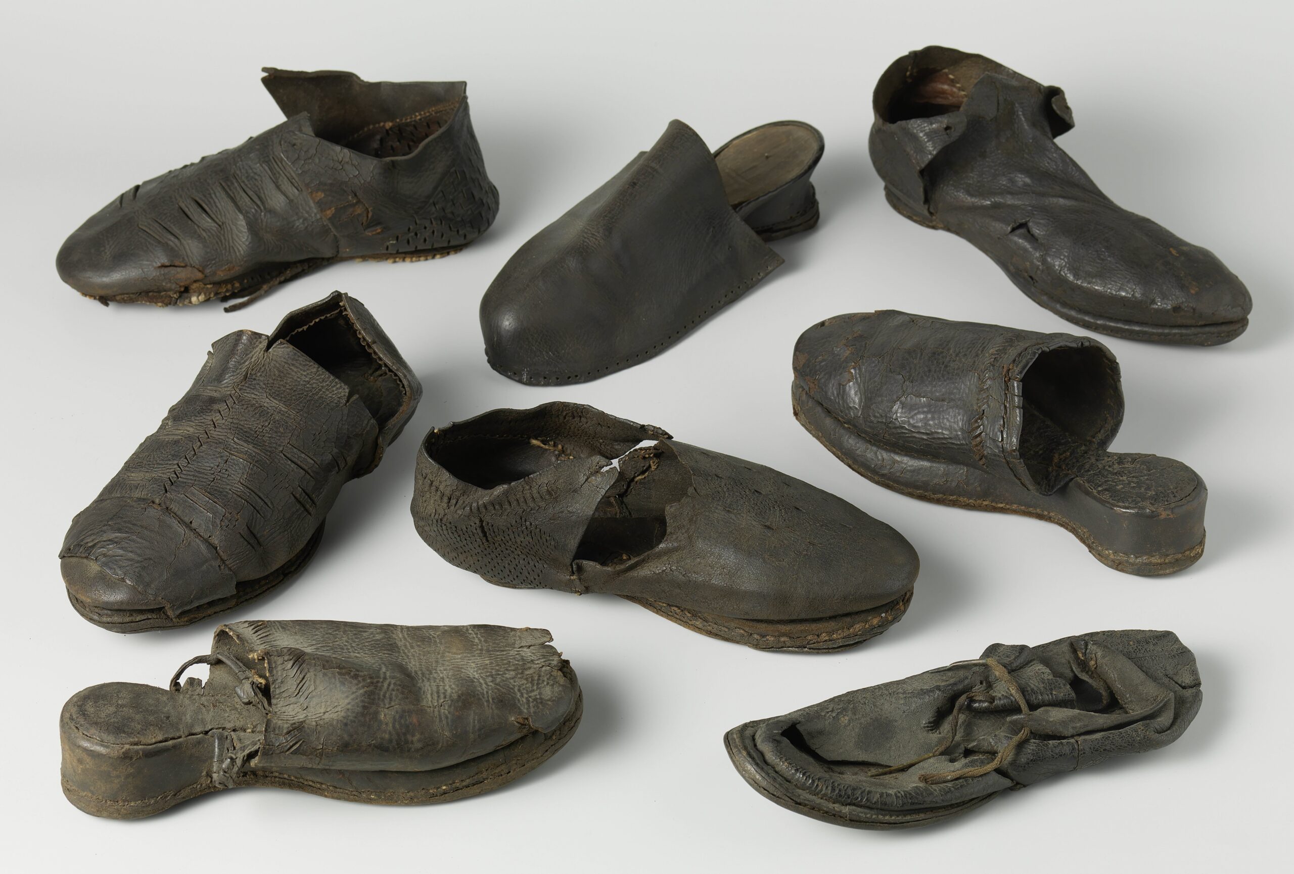 Leren muiltjes en schoenen, afkomstig van het kamp van Barentsz op Nova Zembla. Collectie Rijksmuseum Amsterdam.