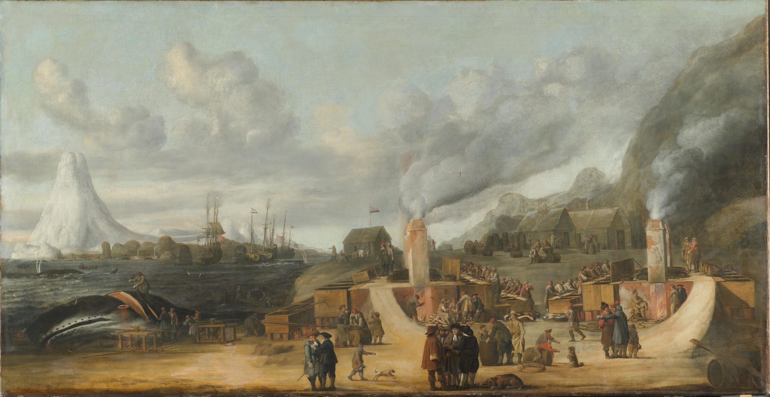 Cornelis de Man, Een traankokerij van de Noordse of Groenlandse Compagnie op Smeerenburg, een nederzetting van Nederlandse walvisvaarders op Spitsbergen, 1639. Collectie Rijksmuseum Amsterdam.