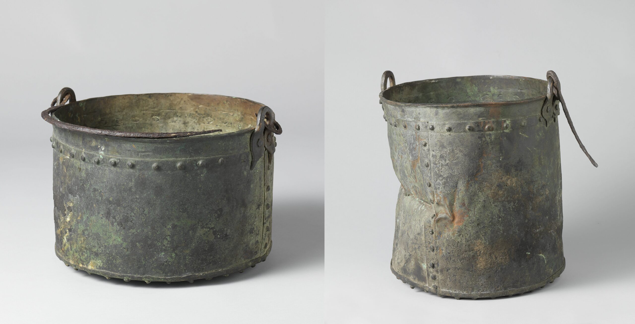 Twee koperen kookpotten, afkomstig van het kamp van Barentsz op Nova Zembla. Collectie Rijksmuseum Amsterdam.