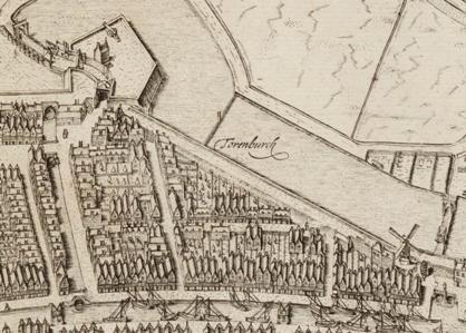 De stadswal aan de noordzijde van de stad op de kaart van Jacob van Deventer, ca. 1560. Beeld: Regionaal Archief Alkmaar.