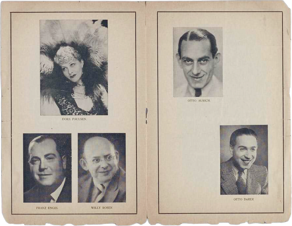 Illustratie uit het besproken boek. Veel uit Berlijn gevluchte artiesten traden in Theater van de Lach op: Dora Paulsen, Franz Engel, Willy Rosen, Otto Aurich en Otto Dürer. Circa 1941, Joods Historisch Museum. D008784.