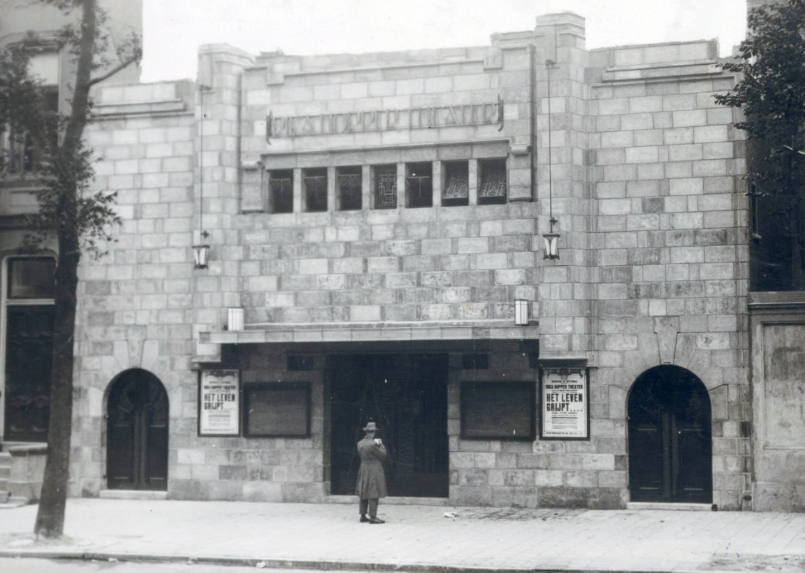 Illustratie uit het besproken boek. Foto van het Rika Hoppertheater in 1927, later Theater van de Lach, tegenwoordig Desmet Studio’s. Fotograaf onbekend, Stadsarchief Amsterdam, Afbeeldingsbestand HVVA00074000001.