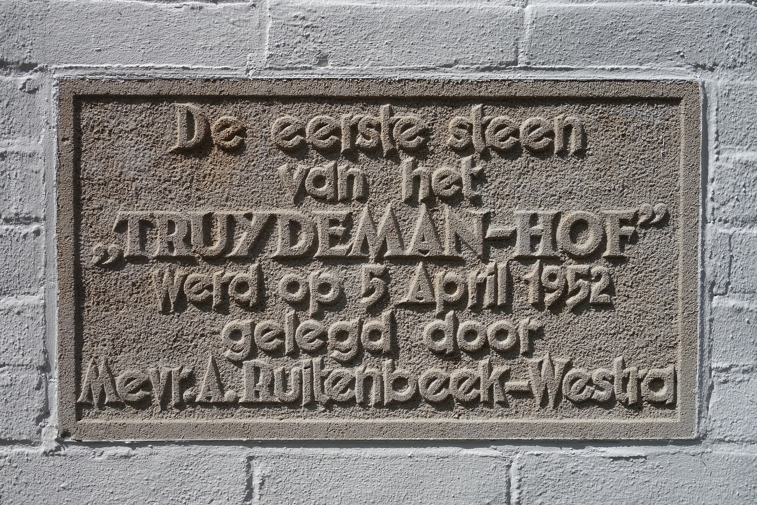 Eerste steen van het Truydemanhof in Hoorn werd gelegd in 1952. Foto: Dqfn13, CC BY-SA 4.0, via Wikimedia Commons.