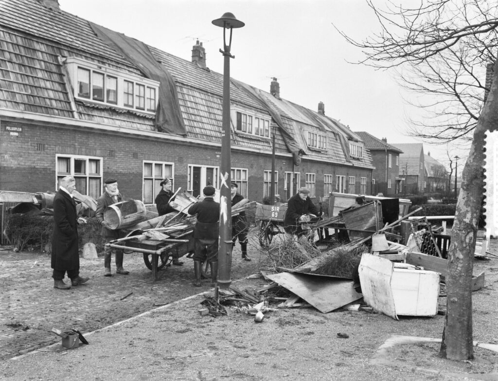 Ramp Tuindorp Oostzaan, 14 januari 1960. Fotograaf: Joop van Bilsen / Anefo. Beeld: Nationaal Archief, Bestanddeelnummer 910-9449, publiek domein.