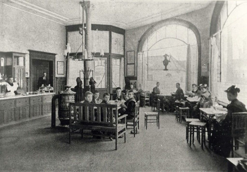 Interieur van Haarlemsche Melkinrichting De Sierkan in 1904. Noord-Hollands Archief / Beeldcollectie van de gemeente Haarlem, Inventarisnummer 57093.