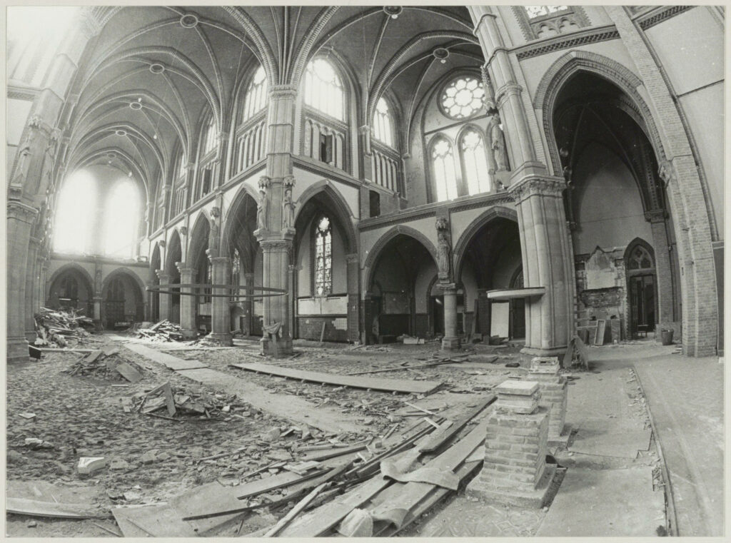 Interieur van de Onze Lieve Vrouw van de Heilige Rozenkrans en de Heilige Dominicuskerk of Spaarnekerk tijdens de sloop, ziende naar het zuidoosten, 1981. Fotograaf: Cees de Boer (1918-1985). Noord-Hollands Archief / Collectie van foto’s en negatieven van Fotopersbureau De Boer te Haarlem, inventarisnummer: 3333.