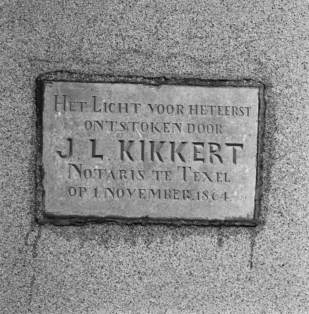 De ontwerper Quirinus Harder, dezelfde als van vuurtoren Lange Jaap in Huisduinen, legde de eerste steen. Kikkert zelf ontstak op 1 november 1864, in aanwezigheid van alle Texelse notabelen, het licht van de nieuwe vuurtoren. Het was een groot feest, met vuurwerk, toespraken en lofredes op de persoon Kikkert. Het laatste couplet ging zo:”Zo zwelt thans Uw boezem van zalige vreugd! Zo is thans Uw harte meer dan verheugd! Nu Kikkert, hetgeen door U werd bedacht Voor zeeliens behoud, hier tot stand is gebragt.”