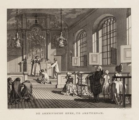 Een dienst in de Armeense Kerk. Prent van C. Philips Jacobsz. en P. Wagenaar, 1783. Collectie STADSARCHIEF AMSTERDAM.