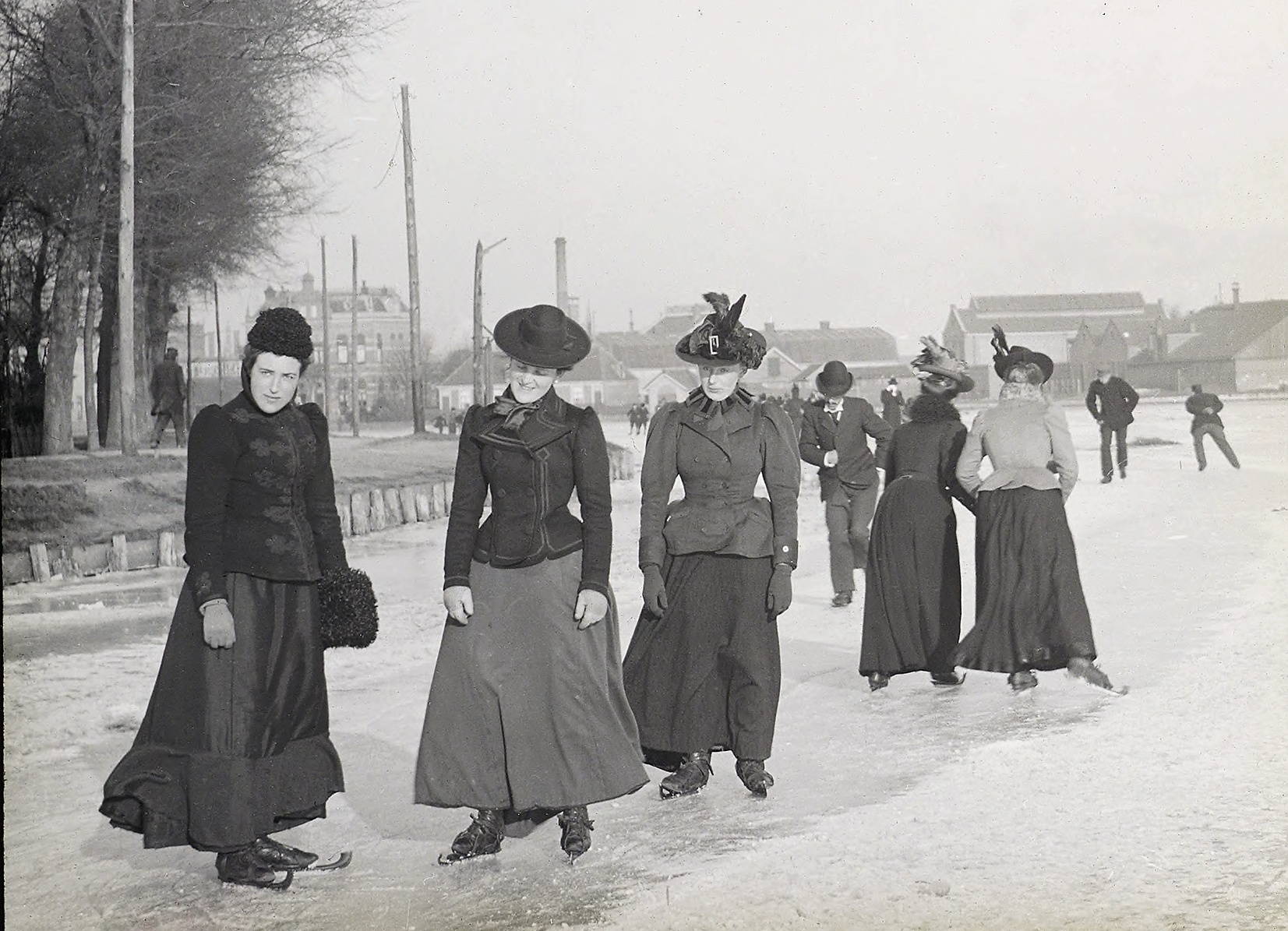 Op de Amstel werd in de winter zelfs geschaatst, zoals deze foto van Jacob Olie uit 1901 laat zien, met rechts De Omval. Stadsarchief Amsterdam, afbeeldingsbestand 010019001318.