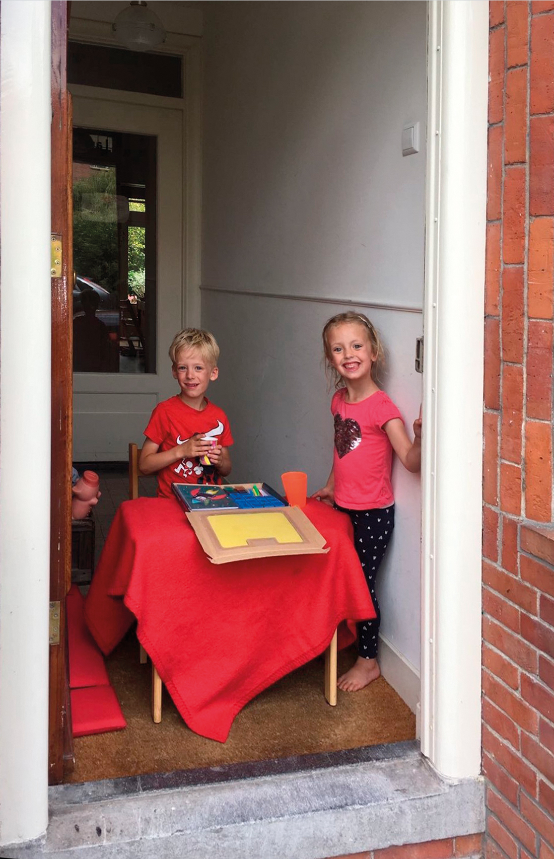 Aike (6) en Anna (4) in hun ‘tattooshop’. Foto: archief familie Sterringa.